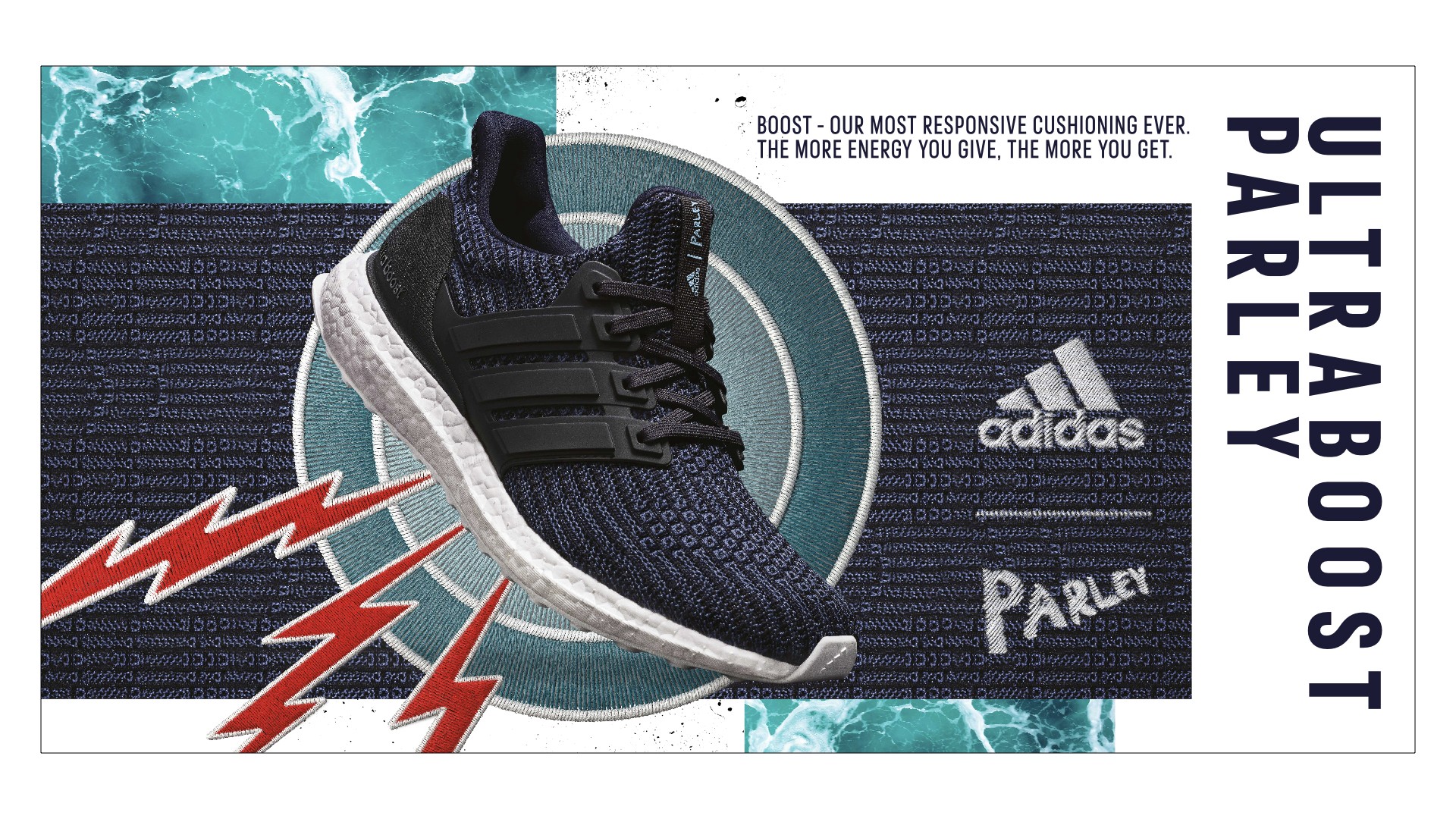 In the stop-motion video, the upper knit is used as a canvas. On it the creation story of the UltraBOOST Parley is told through beautiful embroidery. The content has been rolled out through adidas channels in cinema’s, online video, social, in-store and print.